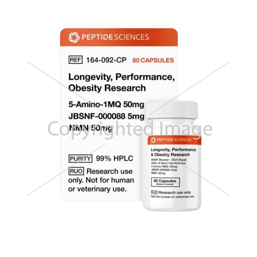 Лонжевити, Перфоманс Обесити Ресирч (5-Амино-1МКУ,НМН,ЖБСНФ) Пептид Саенс (Longevity, Performance & Obesity Research (5-Amino-1MQ, NMN, JBSNF) PeptideSciences)